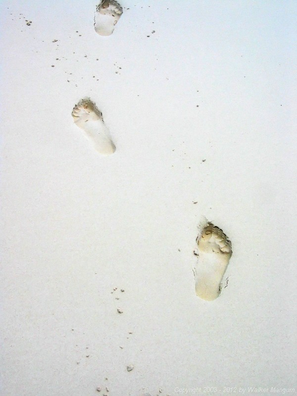 | Walker's footprints on the beach at Anegada | |