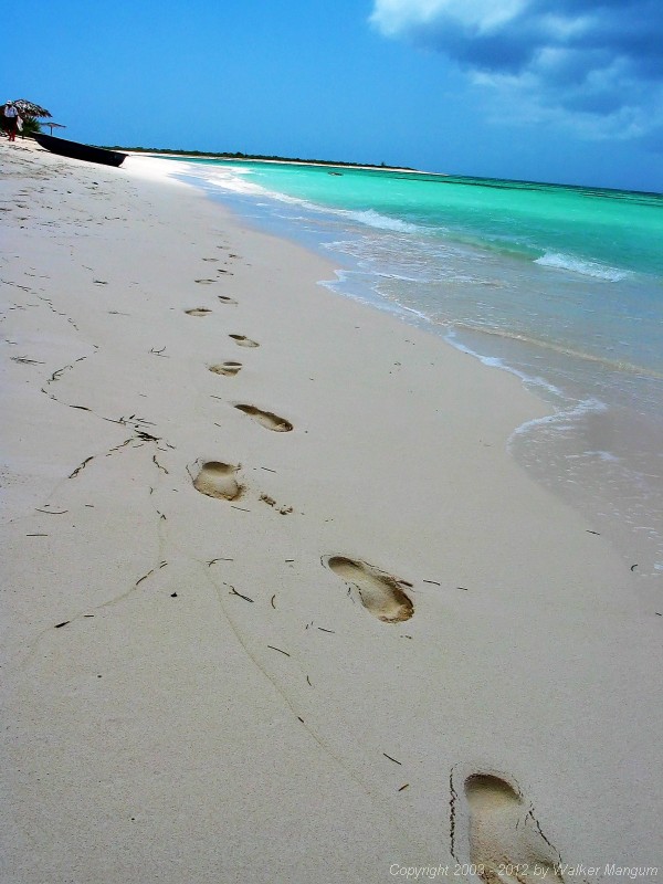 | Walker's footprints on the beach at Anegada | |