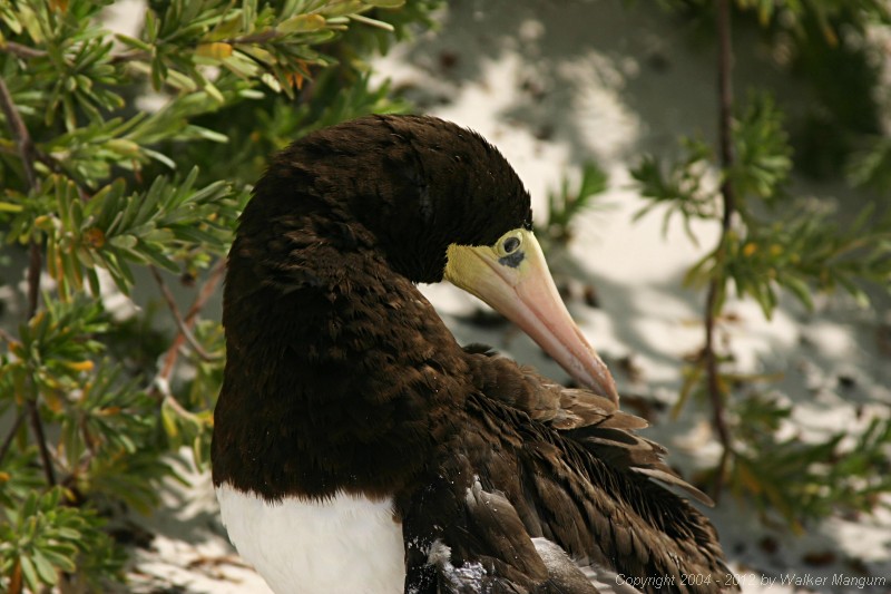 | Brown booby with broken wing on the Cow Wreck beach. | |