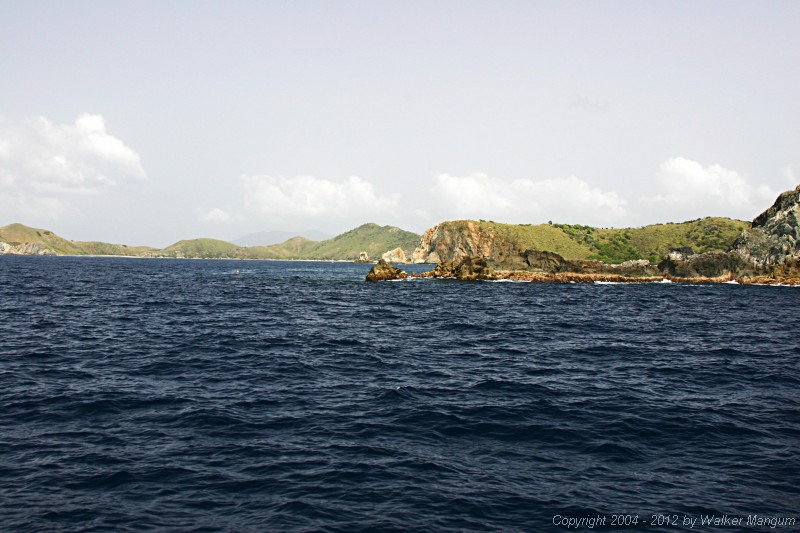 | Rounding Markoe Point, Cooper Island. Salt Island in the background. | |