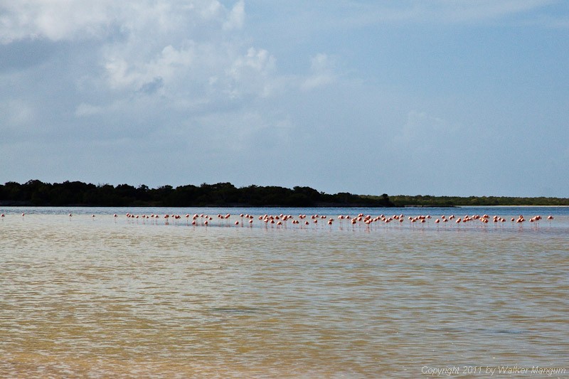 | The Anegada flamingo flock. I count 132 birds in this photo. | |